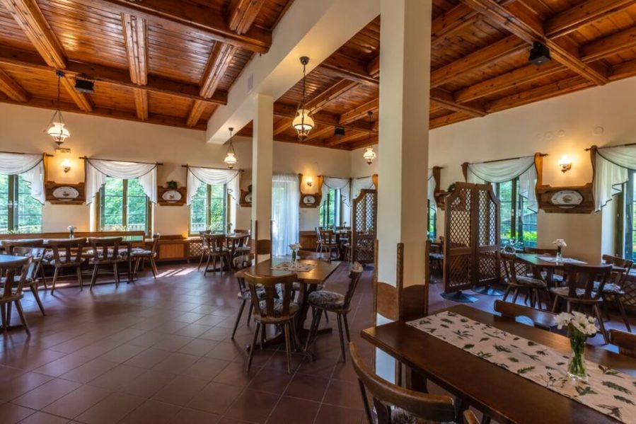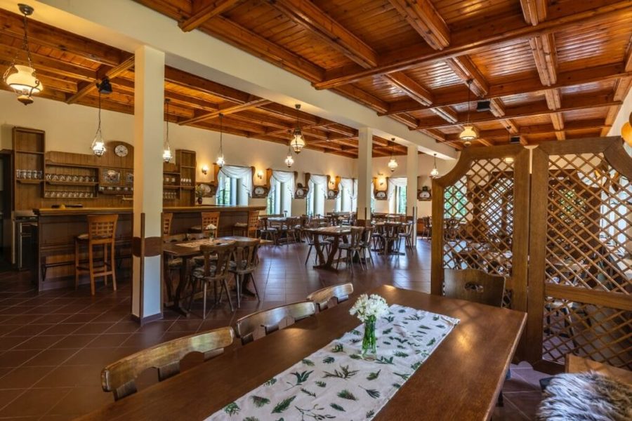 Im Hauptgebäude der Pension befindet sich ein stilvolles Restaurant, in dem auch ein Frühstücksbuffet serviert wird. Das Restaurant hat keinen normalen Restaurantbetrieb. Das Restaurant eignet sich für verschiedene gesellschaftliche Veranstaltungen, Hochzeiten, Geburtstagsfeiern und Firmentreffen. Das Restaurant verfügt auch über einen direkten Zugang zur großzügigen Terrasse mit Blick auf die umliegende Landschaft und das Plätschern des Baches direkt unterhalb der Terrasse.