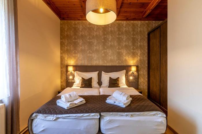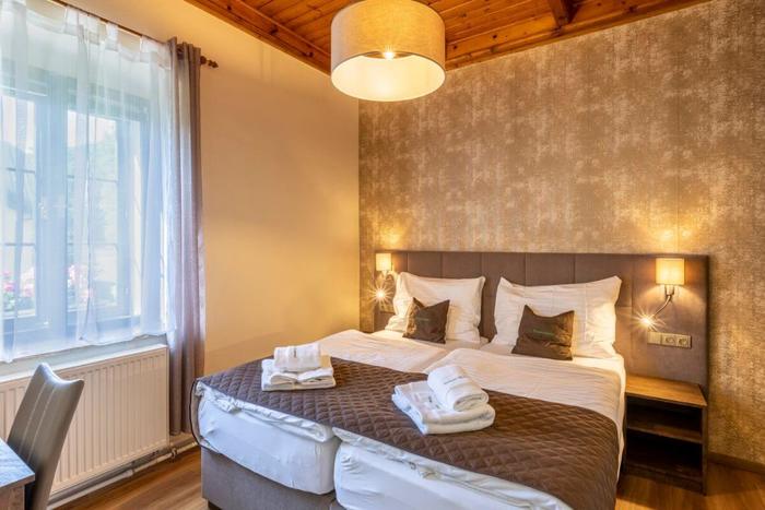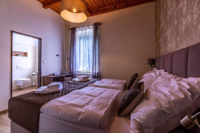 Pokój dwuosobowy nr 2 znajduje się w budynku głównym na 1. piętrze. Orientacja PZ. Pokój ten został całkowicie odnowiony. Z pokoju roztacza się widok na ogród pensjonatu, buki Gór Izerskich, staw i góry. Pokój o powierzchni 13 m² jest podzielony na sypialnię i przestronną łazienkę. Oferuje on gościom bardzo komfortowe zakwaterowanie. W pokoju znajdują się wbudowane szafy, miejsce na bagaże i płaszcze, wygodne podwójne łóżko z wysokiej jakości materacem i szafkami nocnymi, biurko z minibarem, krzesło i futro. Łazienka z przestronnym prysznicem i podwieszaną toaletą zwiększa komfort pokoju. Na wyposażeniu pokoju znajduje się zestaw do kawy, suszarka do włosów, ręczniki oraz ręczniki kąpielowe.