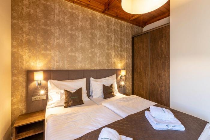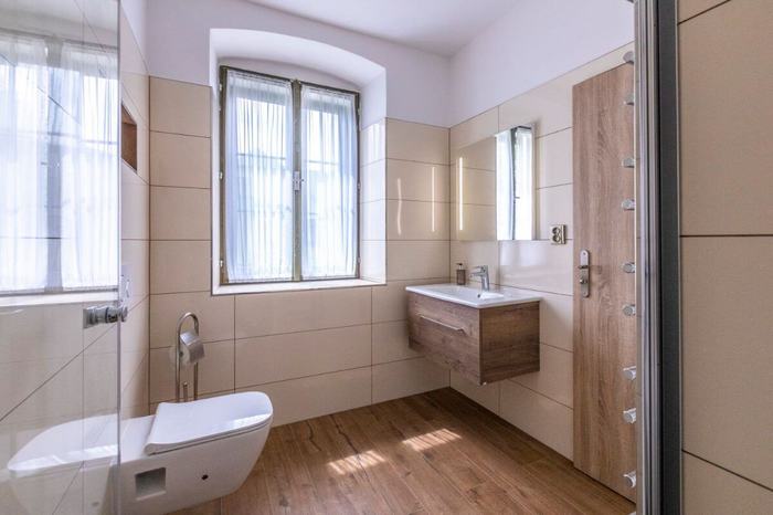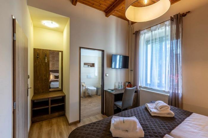 Das Doppelzimmer Nr. 2 befindet sich im Hauptgebäude im ersten Stock. Orientierung SW. Dieses Zimmer ist komplett neu renoviert. Das Zimmer bietet einen Blick auf den Garten des Gästehauses, die Buchen des Isergebirges, den Teich und die Berge. Das 13 m² große Zimmer ist in ein Schlafzimmer und ein geräumiges Badezimmer unterteilt. Es bietet den Gästen eine sehr komfortable Unterkunft. Das Zimmer verfügt über Einbauschränke, Stauraum für Gepäck und Oberbekleidung, ein bequemes Doppelbett mit hochwertigen Matratzen und Nachttischen, einen Schreibtisch mit Minibar, Stuhl und Fell. Ein Badezimmer mit einer geräumigen Dusche und eine Wandtoilette trägt zum Komfort des Zimmers bei. Zu den Annehmlichkeiten der Zimmer gehören ein Kaffeeservice, ein Haartrockner, Handtücher und Badetücher.